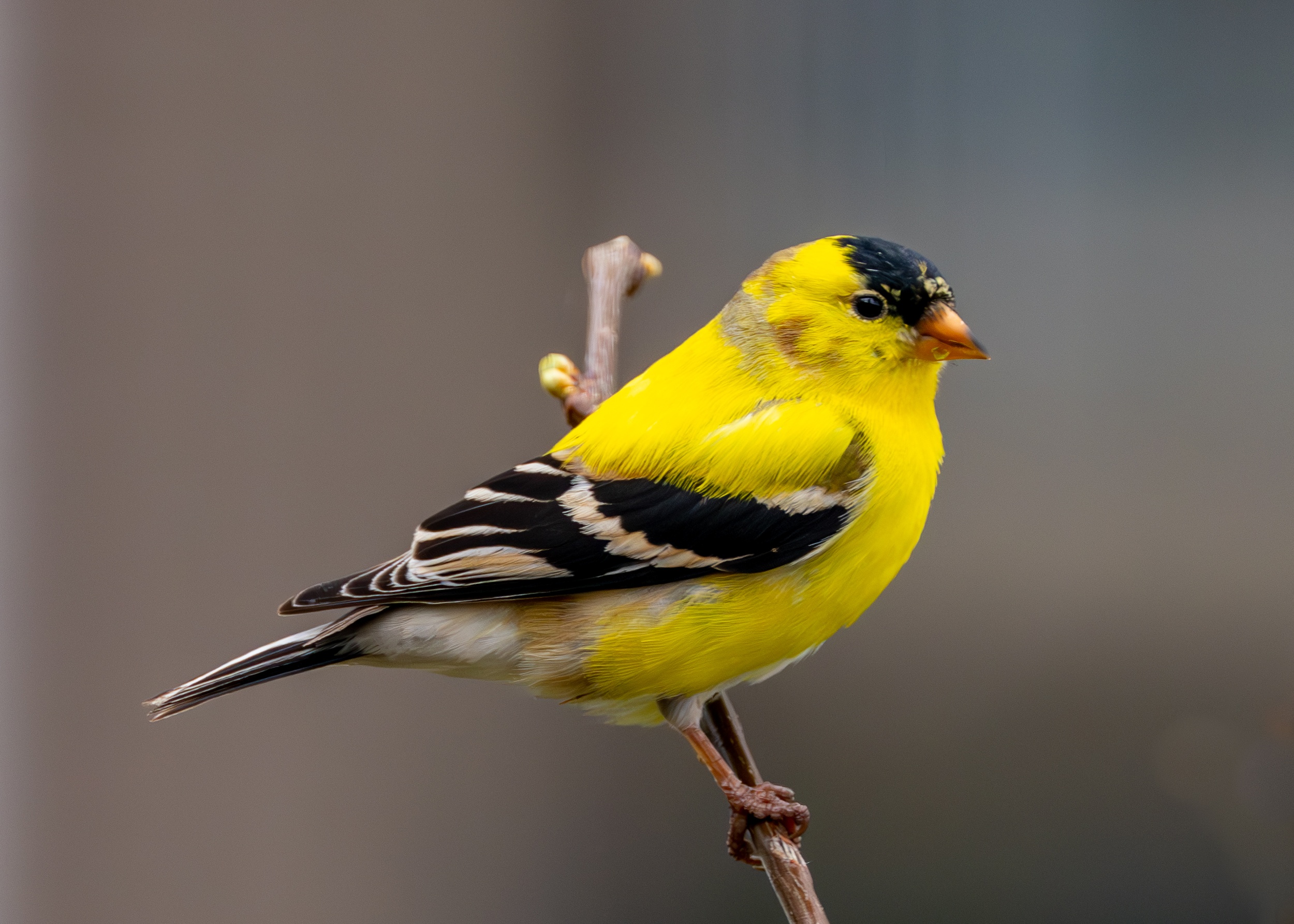 In full breeding color, this male American Goldfinch glows with lemon-yellow plumage, a crisp black cap, and bold black-and-white wings. Males molt into this brilliant look later than many songbirds, making their sudden spring color change one of the clearest signs that warm weather has really settled in around Lake Koshkonong.